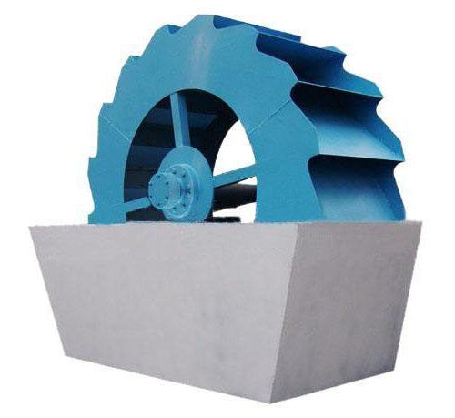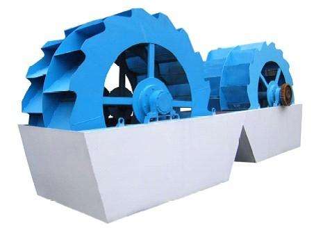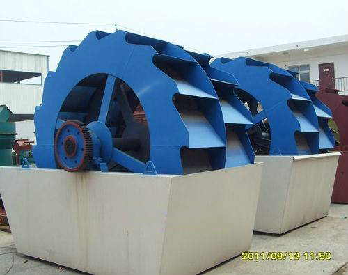 洗砂机工作时,电机通过三角带、减速机、齿轮减速后带动叶轮缓慢转动,砂石有给料槽进入洗槽中,在叶轮的带动下翻滚,并互相研磨,除去覆